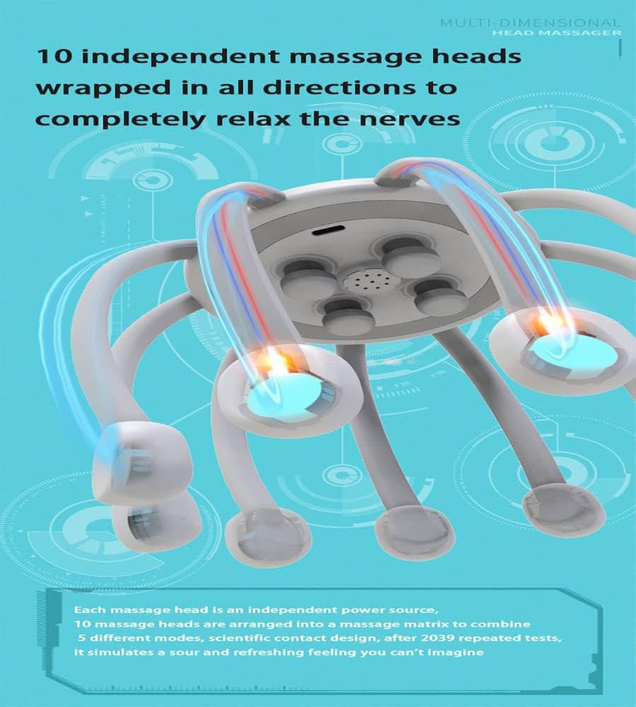 Experience Deep Relaxation with the 10-Motor Octopus Electric Head Massager