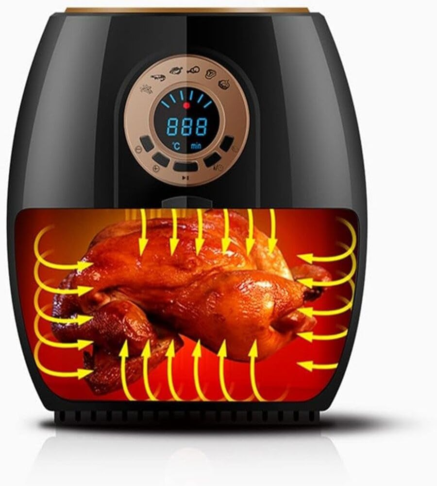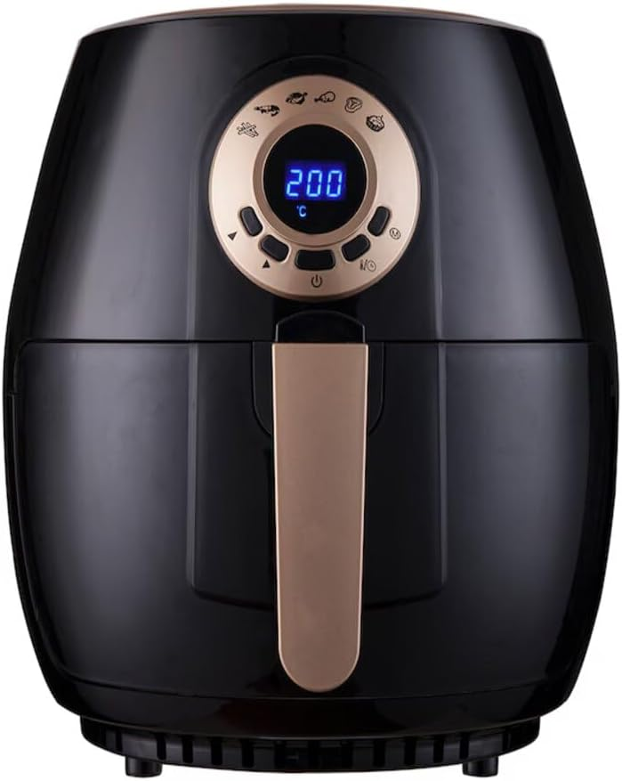 Equipped with Rapid Air Circulation Technology, this air fryer delivers crispy, golden results with up to 80% less fat. The round-bottom design ensures 360° even heating, while the LED digital display gives you full control over temperature (80°C–200°C) and timer settings (up to 30 minutes).