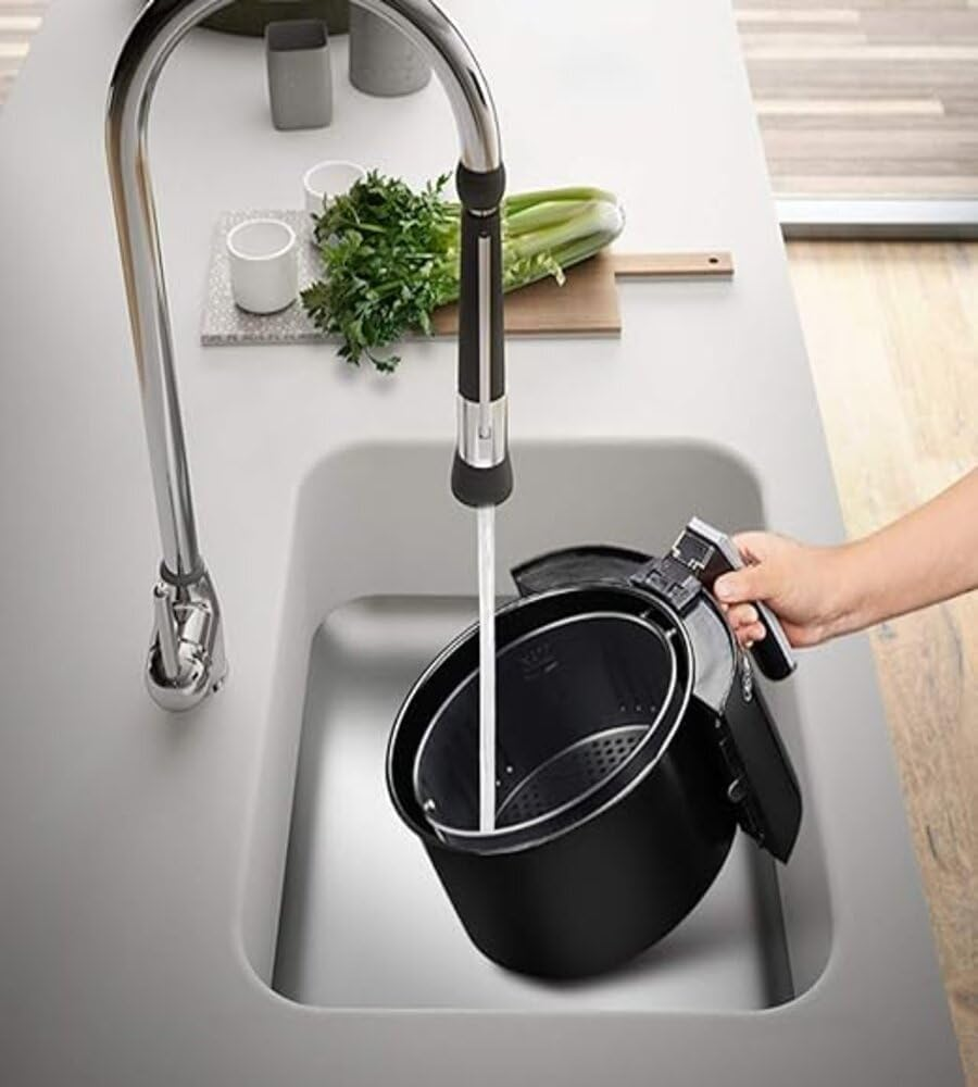 Its rapid air circulation system reduces cooking time and eliminates the need for excess oil. The non-stick baskets and pull-out drawers are removable and dishwasher-safe, making cleanup effortless. Plus, the integrated air filter keeps your kitchen fresh and odor-free.