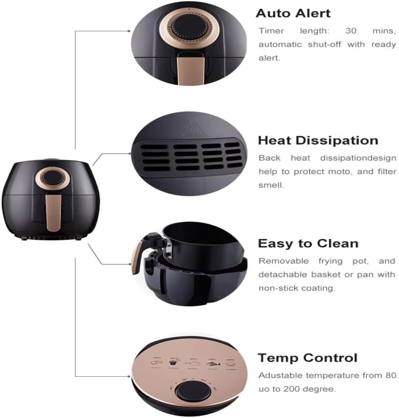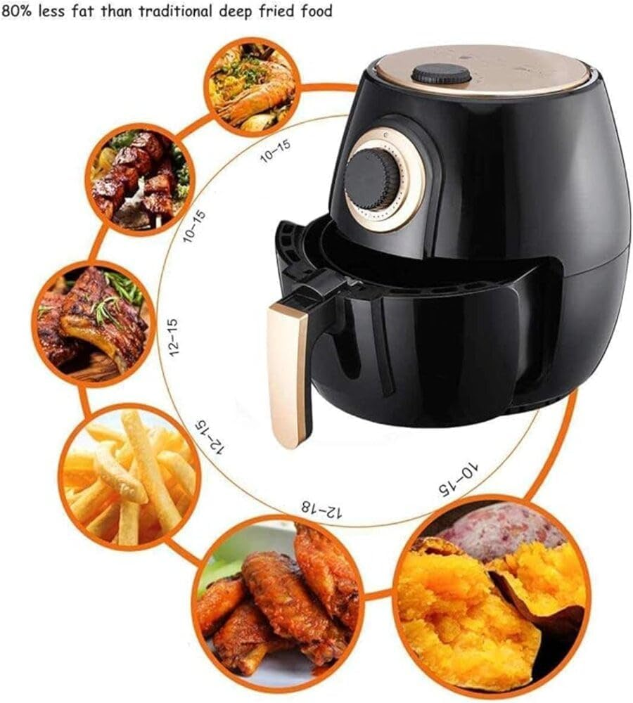 Built with a durable heat-resistant glass coating and reinforced screws, it features a round-bottom design that ensures 360° even heat distribution for crispier results. The manual control knobs allow you to set the temperature (80°C–200°C) and timer (up to 30 minutes) with ease, while the auto shut-off function ensures safe cooking every time.