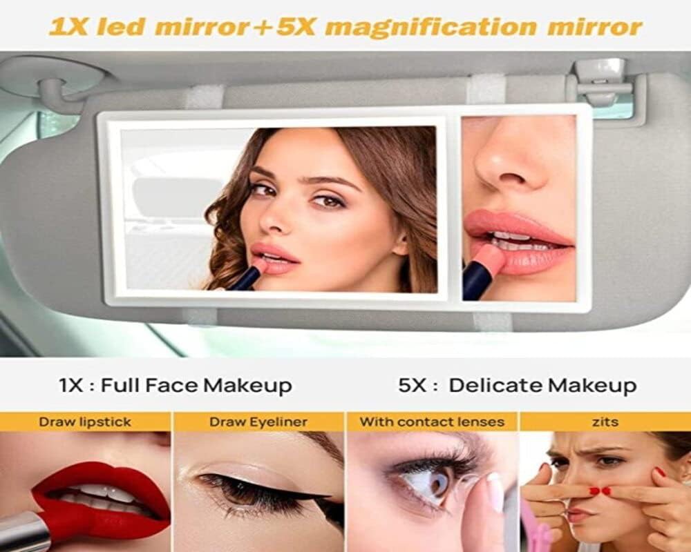 Designed for beauty and convenience, the Car Visor Vanity Mirror is your ideal travel companion for flawless makeup touch-ups and grooming. Featuring a 5X magnifying mirror, adjustable LED lighting, and a rechargeable battery, this mirror ensures you always look your best—anytime, anywhere.