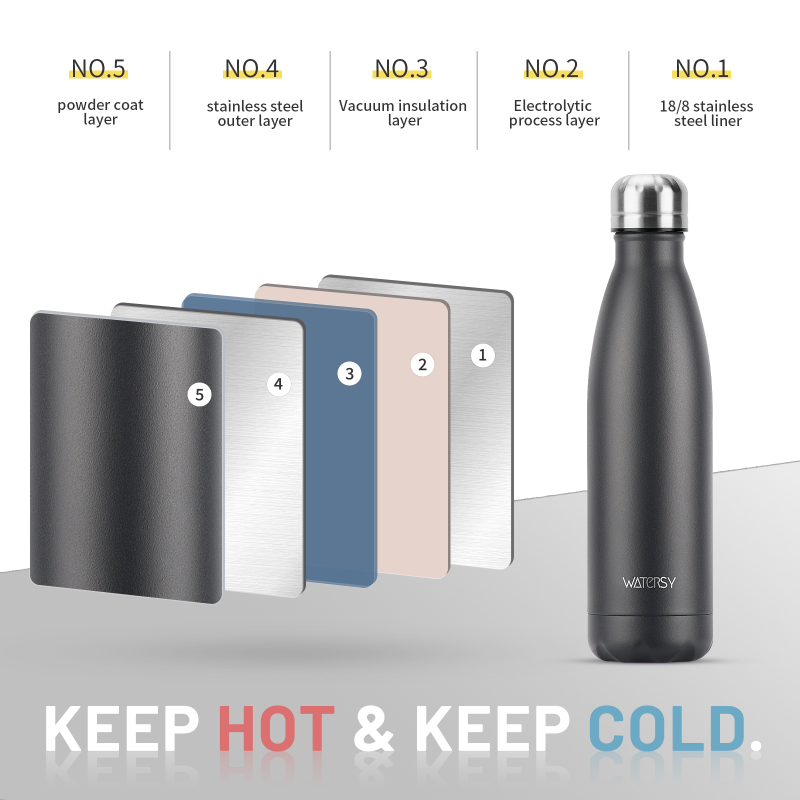 Stay refreshed with the WATERSY 500ml Insulated Water Bottle – your reliable companion for school, gym, travel, or work. Designed with triple-wall copper vacuum insulation, it keeps your drinks cold for up to 24 hours and hot for 12 hours. No sweat, no leaks, just pure performance.